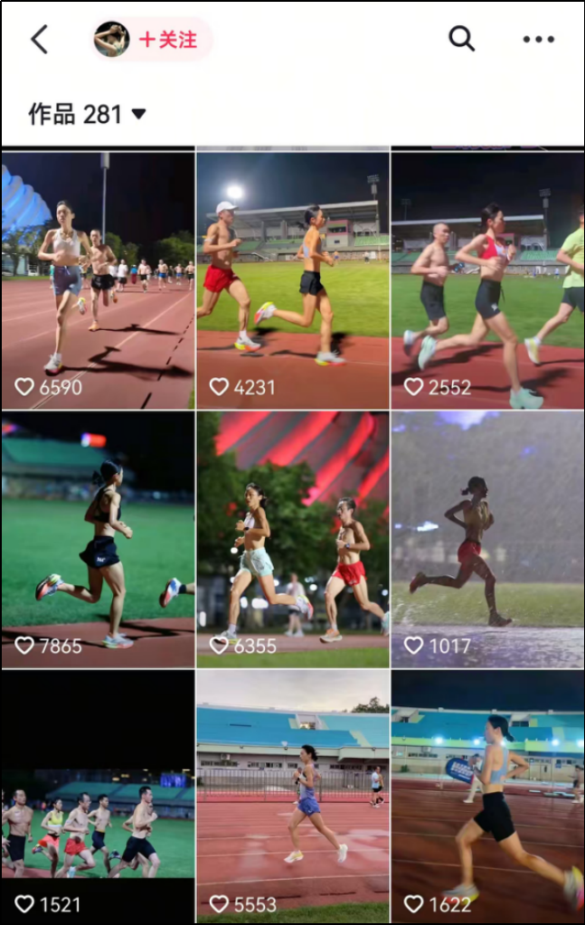 按照网友的爆料和她抖音账号视频记录,她近半年至少跨省跑了10次比赛。