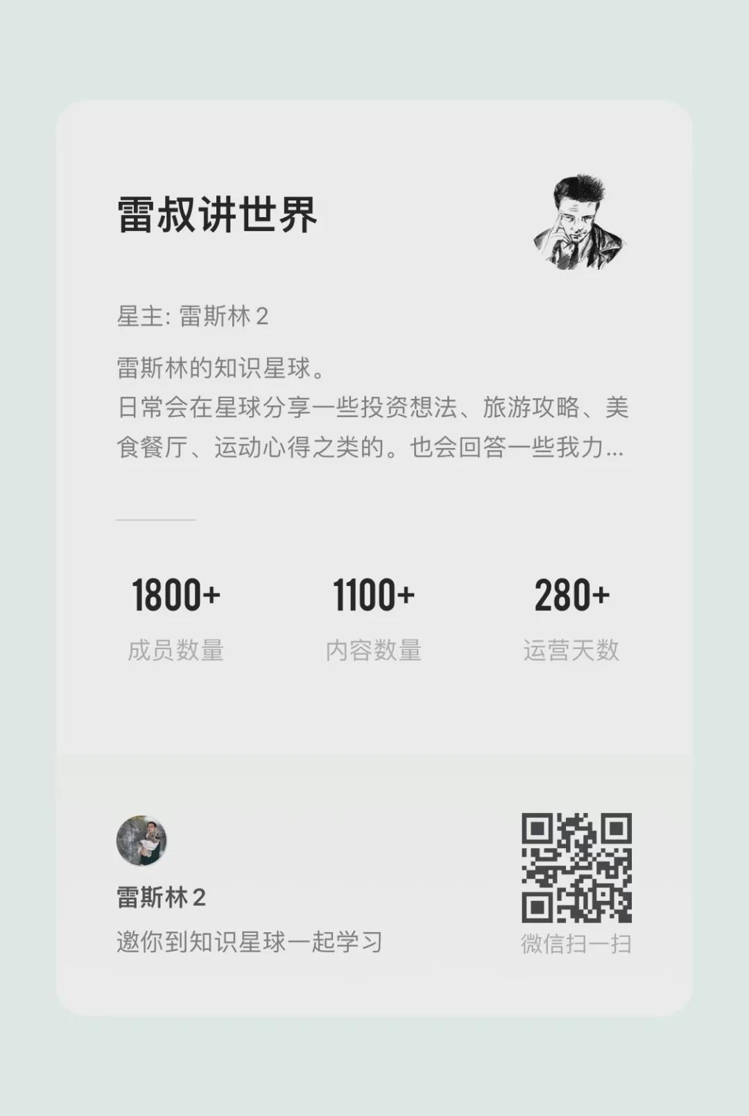 搞了个知识星球,名字叫【雷叔讲世界】。
